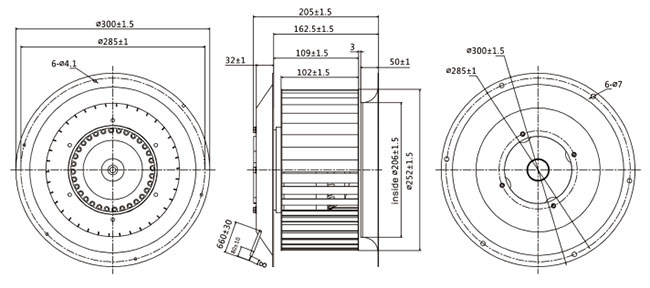 單進(jìn)風(fēng)前傾式離心風(fēng)機(jī)YWFF250