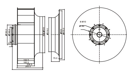 后傾式離心風(fēng)機(jī)YWFB500說明: