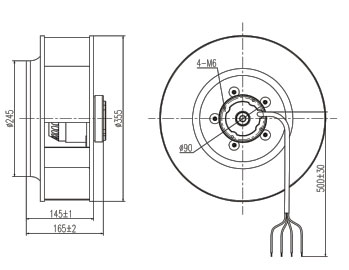 2. 材料:高效外轉(zhuǎn)子交流電機、后傾式圓弧形鋁合金葉輪、免維護深溝球滾珠軸承、靜電粉末噴塑轉(zhuǎn)子