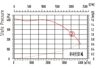 3. 風(fēng)量和靜壓曲線圖: