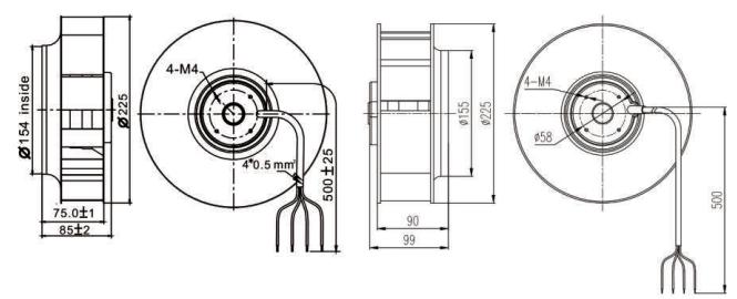 | YWFB4E225 | 230 | 50/60 | 0.23/0.25 | 50/58 | 1500/1700 | 550/620 | 2 | 52/55 | ④⑤ |