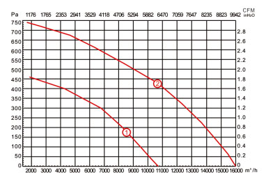 1. 性能參數(shù):由4極和6極額定電壓為380V,頻率50Hz的三相異步電機(jī)組成,額定電流為3.7A和2.4A,輸入功率為2250W和950W,產(chǎn)品凈重為35KG,可分別輸送14300m3/h和10800m3/h的風(fēng)量,最大噪音值為80dB(A)。