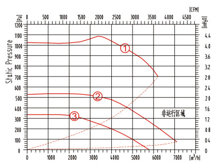 3. 風(fēng)量和靜壓曲線圖: