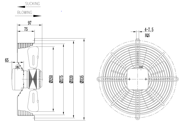 | YWF4E250 | 230 | 50/60 | 0.24/0.27 | 52/64 | 1370/1600 | 1100/1250 | 2 | 50/51 | ③④ |