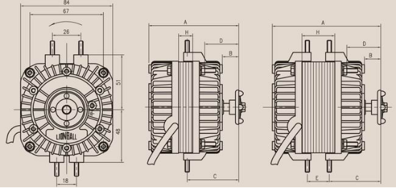 該款電機(jī)裝有兩個(gè)支架安裝角,一側(cè)的螺絲間距為18mm,與之相對(duì)應(yīng)的一側(cè)螺絲間距為26mm。根據(jù)電機(jī)鐵芯厚度和繞線參數(shù)的不同,共有輸出功率為3W到34W等9種型號(hào)的電機(jī)供客戶選擇。額定電壓有220~240V,50/60Hz和 110~115V,50/60Hz兩種。對(duì)于客戶需求的不同的引出線長(zhǎng)度、前后端蓋的樣式、后端蓋是否帶螺紋孔、特殊的使用環(huán)境等均能按要求設(shè)計(jì)定做。為最大限度的發(fā)揮電機(jī)性能,我司可提供風(fēng)葉、安裝支架、網(wǎng)罩、法蘭等產(chǎn)品附件,購(gòu)買(mǎi)前請(qǐng)?jiān)敿?xì)說(shuō)明風(fēng)葉氣流風(fēng)向和傾斜角度。產(chǎn)品可作為商業(yè)冷柜冷庫(kù)、制冰機(jī)、冷風(fēng)機(jī)、冷水機(jī)、冷凝機(jī)組、中央空調(diào)、取暖器、啤酒機(jī)、攪拌機(jī)等設(shè)備的理想配套產(chǎn)品。